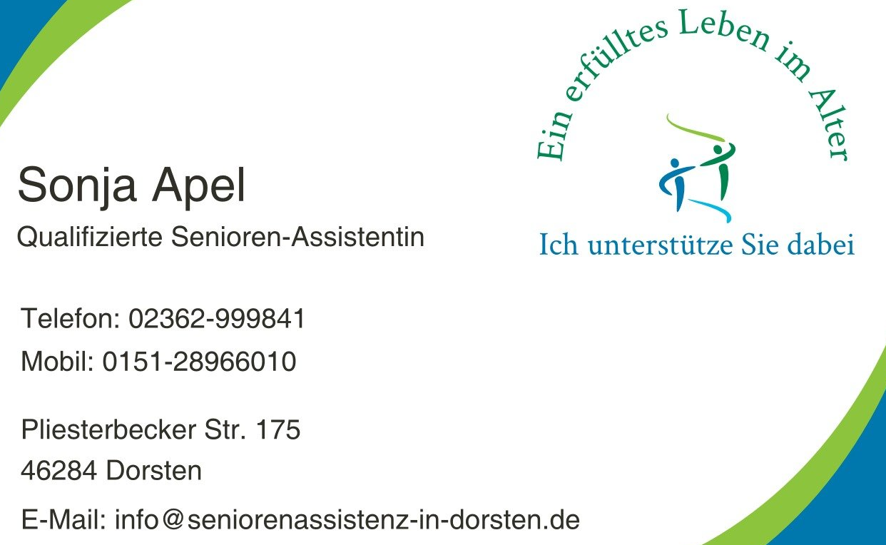 - Ich begleite und unterstütze Sie bei Fragen im Zusammenhang mit Pflegestufen/ Vorsorge u.ä.